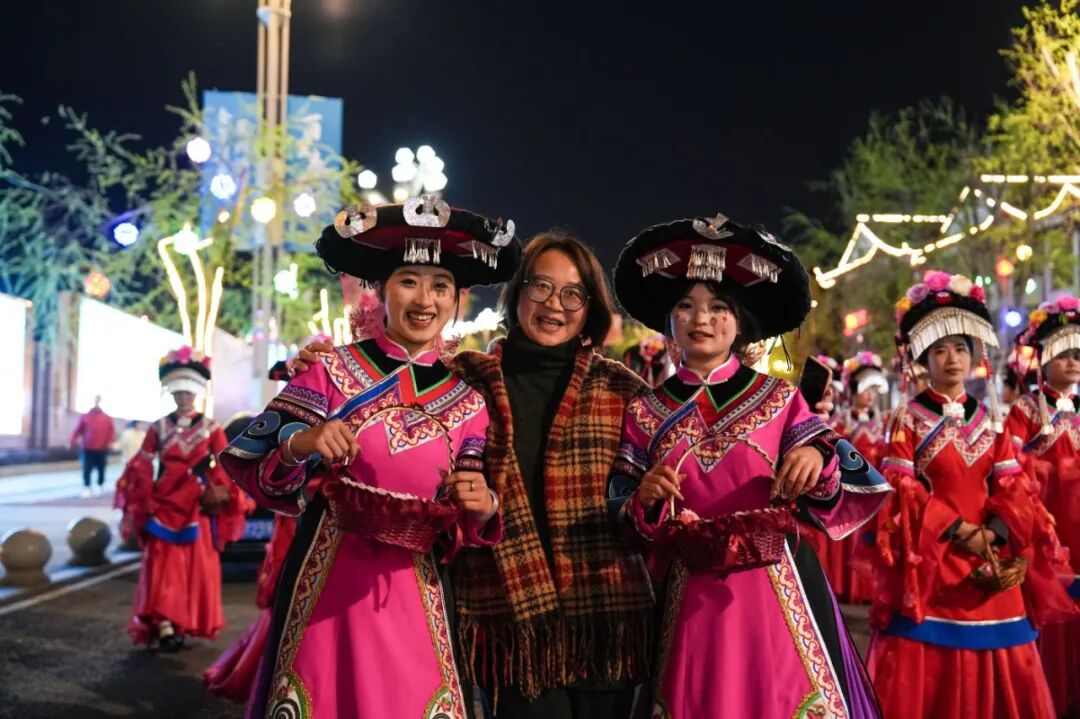 在白天的普底景区,4个“花仙子”方阵身着盛装,沿着寻花路翩然巡游。巡游途中,初见花仙、花仙祈福、花仙送喜、花仙共舞等节目轮番上演,游客们被浓厚的氛围感染,情不自禁加入巡游队伍,与“花仙子”共舞并合影留念,定格美好瞬间。