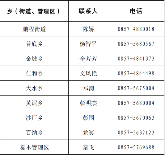 各乡(街道、管理区)服务联系卡