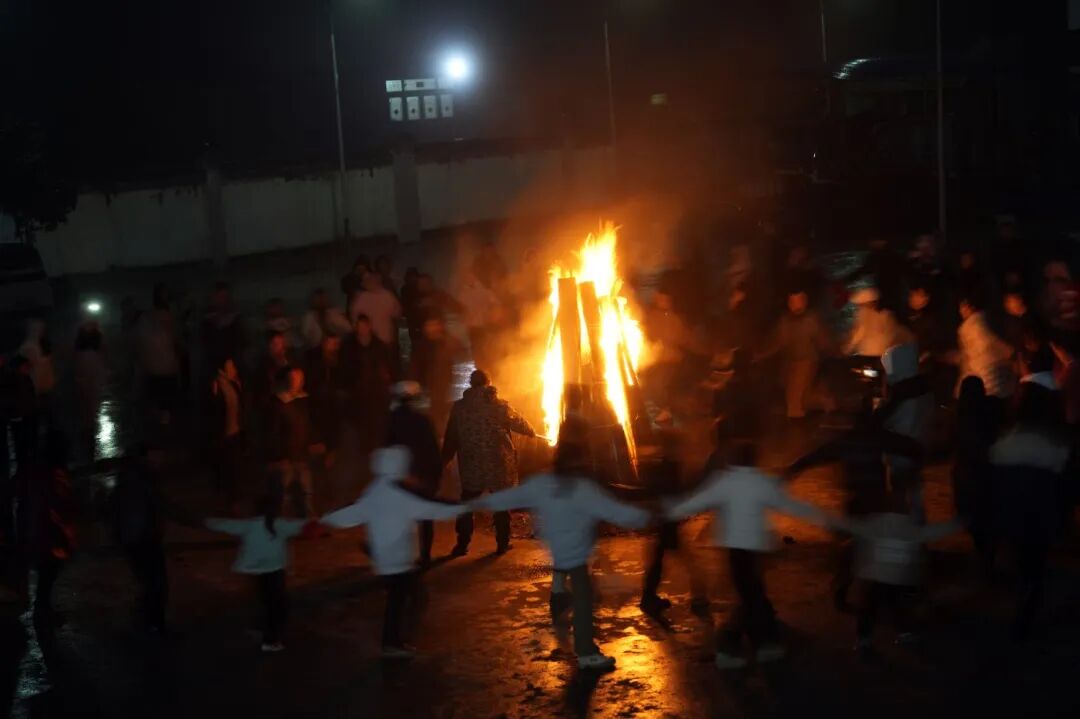 随后,熊熊燃起的篝火,点燃了人们的热情。大家手拉着手,围着篝火载歌载舞,歌声、笑声交织在一起,共同庆祝这个传统节日。