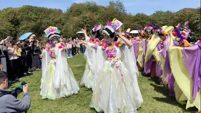 作为本年度杜鹃花季的重磅活动,“花仙子巡游”以“推出沉浸式文旅体验、打造景城融合新场景”为核心,由毕节幼儿师范高等专科学校艺术系86名学子组成专业演出团队,通过“花仙子”角色演绎、主题舞蹈、即兴手势舞等多元形式,将百里杜鹃的生态之美与人文底蕴生动呈现。学生们以近乎完美的舞蹈动作和超强感染力,吸引日均2.3万游客驻足,其即兴创作的“一路生花”手势舞短视频播放量破十万,更涌现出马海月、周璇、王杰等“优秀之星”,被游客盛赞为“最美花仙”。