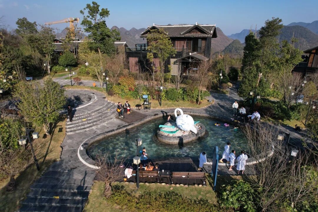 花舍锶锂温泉酒店是贵州省“金汤级”温泉度假地,也是彝山花谷景区特色旅游项目之一,其温泉水中富含锶、锂等对人体有益的微量元素,品质卓越的天然泉水为景区发展康养旅游提供了保障,游客到此住民宿、泡温泉,让身心在池水与静谧中彻底放松。分散在山林间的温泉泡池环境优美、形态各异,景区将泡温泉与赏景有机融合,带给游客纵情大自然、享受康养休闲的旅游体验,吸引了不少游客前来体验。